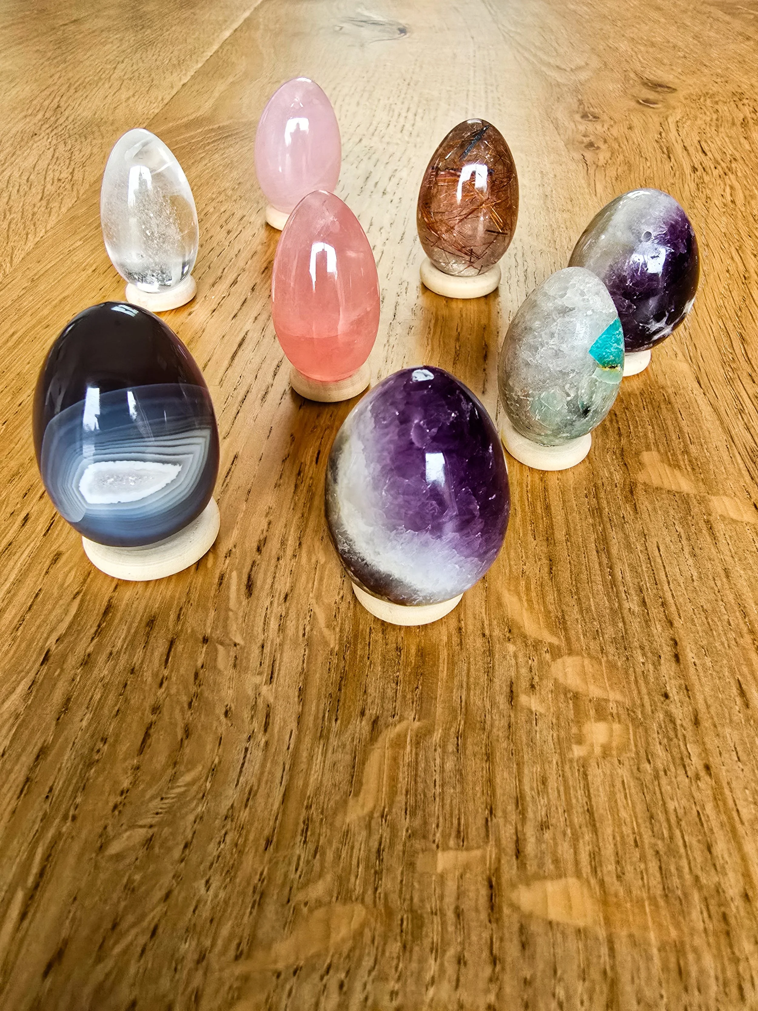 En complément des exercices de renforcement du périnée, je propose l’utilisation d’un œuf de yoni pour en multiplier les effets tout en profitant des bienfaits de la pierre choisie